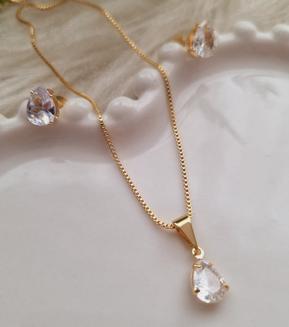 Conjunto gota com zirconia cristal banhado a ouro 18k