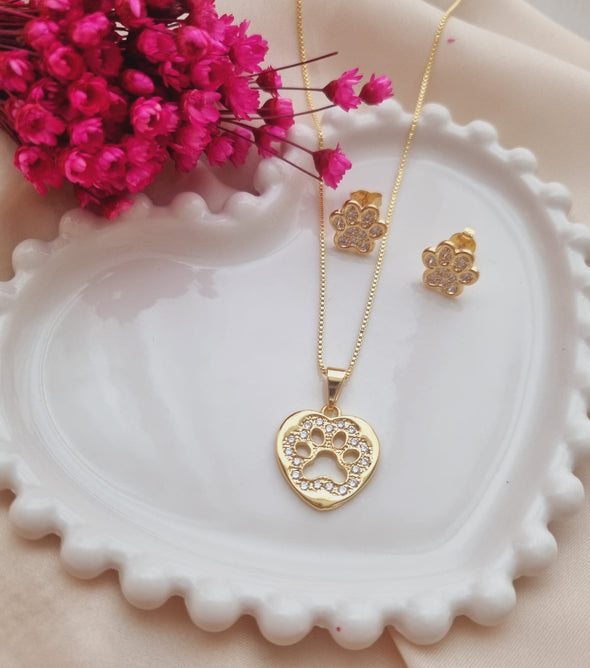 Conjunto patinha cravejada com zircônia banhada a ouro 18K